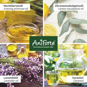 AniForte® Grasmilben-EX Spray ist in erster Linie ein Repellent zur Abwehr und Vorbeugung von Grasmilben bei Deinem Hund. Grasmilben, auch Herbstmilben genannt, sind dafür bekannt, dass ihre Bisse Quaddeln auf der Haut hinterlassen und einen starken Juckreiz auslösen können. Die enthaltenen ätherischen Öle können die betroffenen Hautstellen begleitend beruhigen.