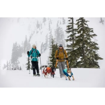 Die recycelte bauschige Isolierschicht, welche die Wärme bei Arbeit und Spiel am Hundekörper hält, bietet guten Schutz vor kalten Wetter. Bei sehr windigen Bedingungen sorgen elastische Beinschlaufen für einen sicheren Sitz. Durch die Leinenöffnung am Rücken kann die Winterjacke auch über den meisten Geschirren getragen werden.